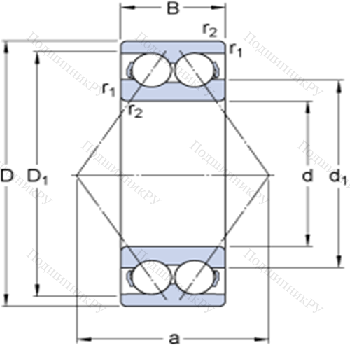 Двухрядные радиально-упорные шарикоподшипники 3220 A
