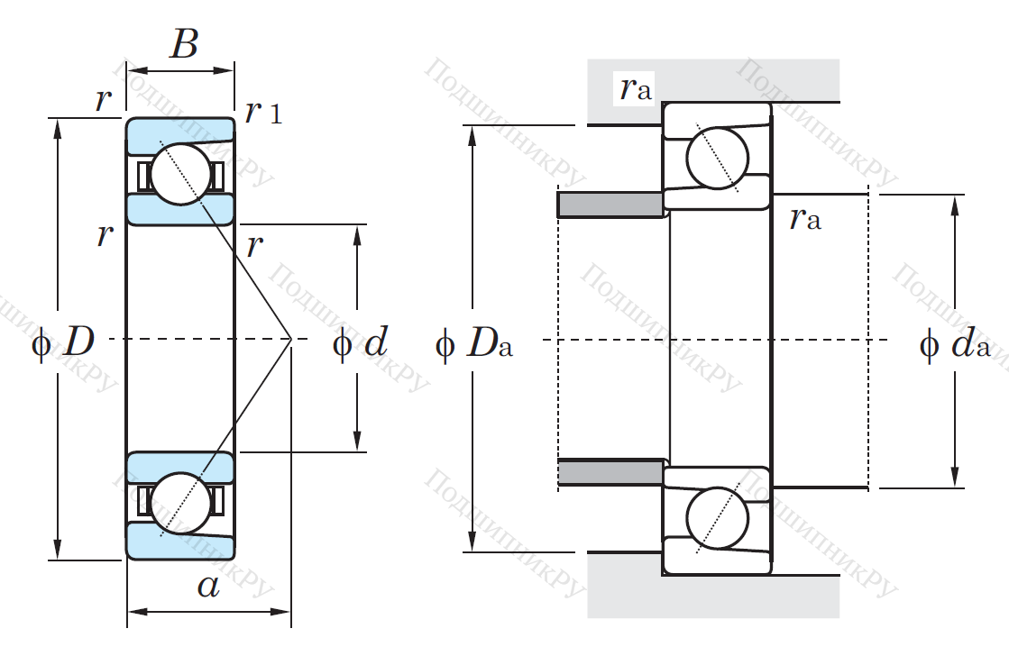 Однорядный шариковый подшипник 7208