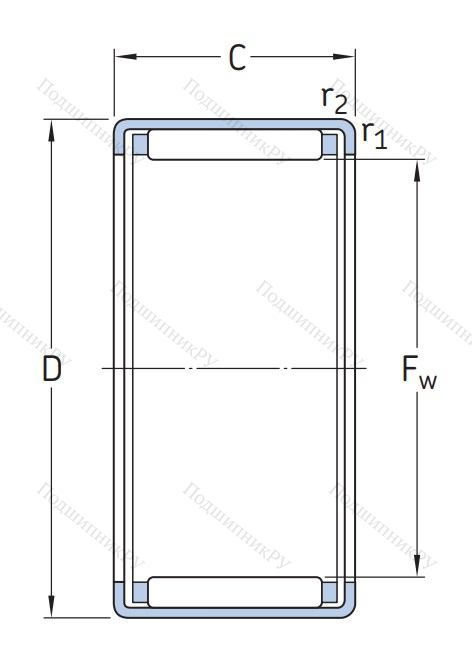 Игольчатый подшипник HK 4516 имеет неразъемную конструкцию, в которую входят игольчатого вида тела качения и наружная штампованная шина. Как правило, является однорядным, без каналов для подачи смазочного материала.