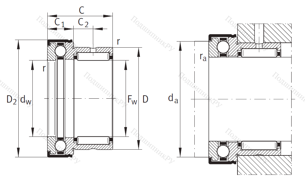 Малогабаритная конструкция Комбинированный подшипник NKX 20 представляет собой совмещение игольчатого радиального роликоподшипника и упорного подшипникового тела качения (роликового или шарикового). В качестве упорной части может идти сепаратор, в то время как иные варианты поставляются без данного элемента. Также существуют фланцевые и бесфланцевые разновидности со стандартным или удлиненным тугим кольцом.