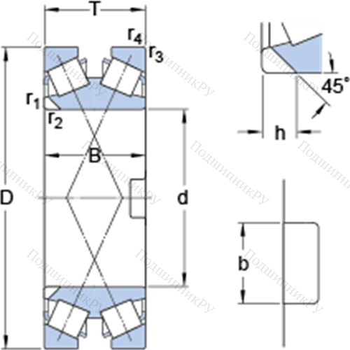 Двухрядные конические роликоподшипники конфигурации TDI 332167 у которого конструкционной особенностью являются ролики в форме конуса и разъемный корпус. Изделие также может быть укомплектовано наружным кольцом с упорным бортиком или большим углом, двухрядными или четырехрядными роликоподшипниками, утолщенной внешней шиной.