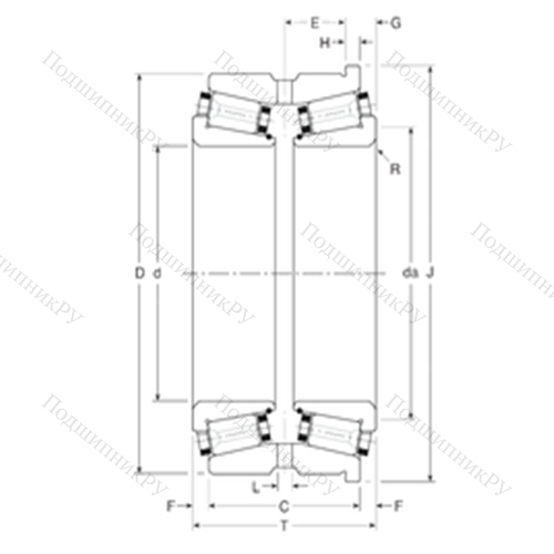 Подшипник роликовый радиально-упорный 284215X/284355XH у которого конструкционной особенностью являются ролики в форме конуса и разъемный корпус. Изделие также может быть укомплектовано наружным кольцом с упорным бортиком или большим углом, двухрядными или четырехрядными роликоподшипниками, утолщенной внешней шиной.
