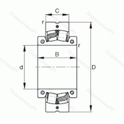 - 22216K / Условное обозначение, двухрядный радиальный сферический роликоподшипник, неразъемный