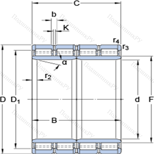 Четырёхрядные цилиндрические роликоподшипники 313528 C