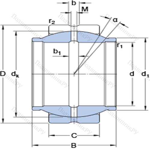 Радиальные сферические подшипники скольжения с контактными поверхностями сталь/сталь, требующие техобслуживания GEG 63 ES