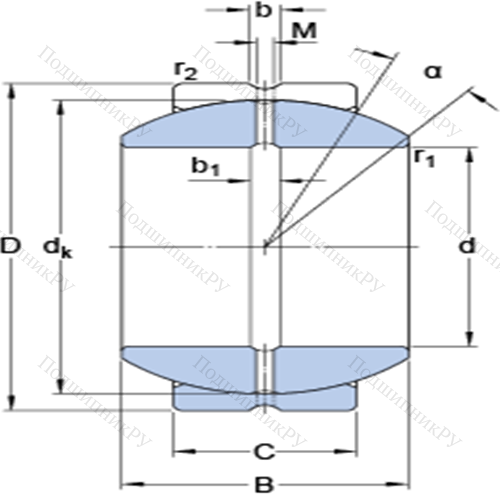 Радиальные сферические подшипники скольжения с контактными поверхностями сталь/сталь, требующие техобслуживания GEZH 204 ES
