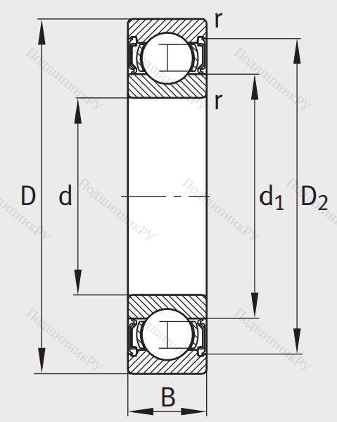 Однорядный шариковый подшипник 62306 2RSR C 3