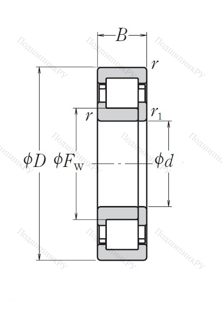 Роликовый цилиндрический подшипник NUP 309 EW относится к группе однорядных цилиндрических роликоподшипников. Конструктивно состоит из:
