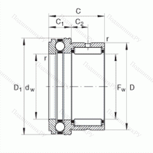 Шарикоподшипник упорный комбинированный с игольчатыми роликами NKX 30