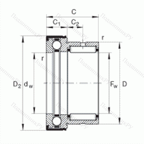 Шарикоподшипник упорный комбинированный с игольчатыми роликами NKX 60-Z