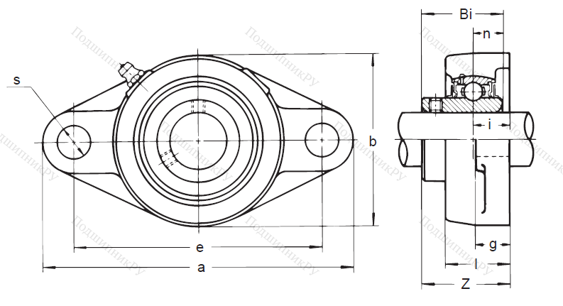 Ромбовидный корпус устройства предназначен для установки с использованием пары болтов в ограниченных пространствах. В зависимости от конкретной конструкции, может оснащаться внутренней обоймой со специальной закрепительной втулкой или стопорным винтом. В модели корпус изготавливается из стали, чугуна или иных материалов.