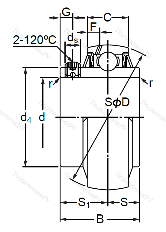 Шариковое радиальное подшипниковое тело, имеющее однорядную конструкцию с расширенной внутренней шиной и двумя уплотнениями. Данное кольцо может выпускаться с различными вариантами крепежа: втулка для закрепления, стопорное эксцентриковое кольцо, винты. Конструкция предназначена для работы совместно с корпусами типов UCP, UCT, UCF, UCPA, UCFL с шириной или высотой подшипника B(H): 31мм.