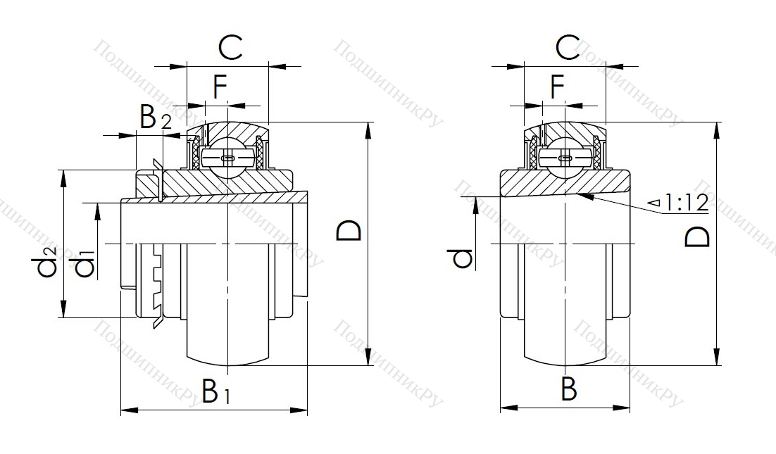 Внешняя обойма устройства – сферическая, что позволяет без проблем компенсировать перекос вала, возникающий в процессе монтажа. В отличие от иных моделей, обладает внутренней посадочной поверхностью в форме конуса (1:12), при помощи которой крепится к валу. Эксплуатируется совместно с втулками Н-типа.