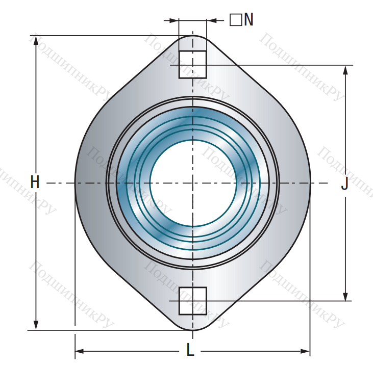 Фланцевая подшипниковая конструкция овальной формы, выполненная из стали методом штамповки. Различные модели, в зависимости от производителя, могут обладать метрическими либо дюймовыми размерными параметрами. Корпус состоит из двух одинаковых частей, удерживающих между собой шарикоподшипник.