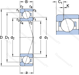 | Номинальная динамическая грузоподъёмность | C | 36.4 | kN | |
